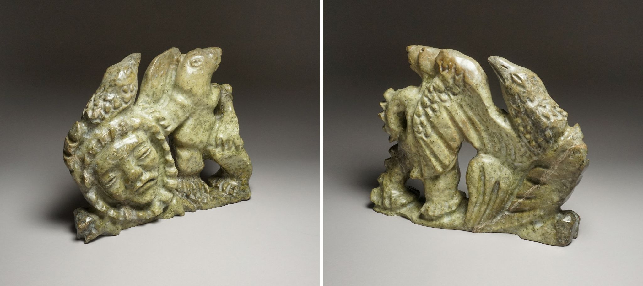 The Private Series November 5 – 29, 2025 Artist Unknown STANDING MAN Kinngait (Cape Dorset) Stone 16 x 6 x 2 in. $4,000 CADArtist Unknown BEAR Iqaluit Stone 4 x 8 1/2 x 2 1/2 in. $1,000 CADTaqialuk Nuna MASK Kinngait (Cape Dorset) Stone 16 x 6 x 2 in. $1,600 CADArtist Unknown BIRD Iqaluit Stone 6 x 19 x 3 in. $1,800 CADArtist Unknown BEAR, c. 1980 Kinngait (Cape Dorset) Stone 6 x 9 1/2 x 3 in. $1,000 CADTytoosie Tunnillie TRANSFORMATION Kinngait (Cape Dorset) Stone 11 x 13 x 4 in. $2,400 CADTaqialuk Nuna MASK Kinngait (Cape Dorset) Stone 9 x 6 x 2 1/2 in. $1,000 CADIqaluk Qatsiya MAN Kinngait (Cape Dorset) Stone 13 1/2 x 10 1/2 x 3 in. $3,000 CADJacob Uppik BEAR Sanikilluaq Stone 3 1/2 x 8 5/8 x 3 1/2 in. $1,200 CADArtist Unknown MAN WITH AXE Kinngait (Cape Dorset) Stone 12 1/8 x 7 3/8 x 3 1/8 in. $2,200 CADTaqialuk Nuna MASK ON BASE Kinngait (Cape Dorset) Stone 15 x 10 x 2 in. $2,200 CADArtist Unknown BEAR Kinngait (Cape Dorset) Stone 9 x 15 x 6 in. $3,000 CADJoanie Ragee STANDING WHITE BEAR Kinngait (Cape Dorset) Stone 17 x 8 1/2 x 5 in. $3,000 CADArtist Unknown FACE TRANSFORMATION Kinngait (Cape Dorset) Stone 14 1/2 x 8 1/2 x 3 1/2 in. $2,800 CADMikigak Kingwatsiak BEAR ATTACKING MAN Kinngait (Cape Dorset) Stone 9 x 11 x 4 1/2 in. $3,000 CADArtist Unknown WOMAN CAPTURING SEDNA Iqaluit Stone 20 1/2 x 12 x 3 in. $4,800 CADArtist Unknown WALKING BEAR, 1988 Kinngait (Cape Dorset) Stone 11 x 15 x 7 in. $4,000 CADArtist Unknown BEAR AND SEAL Kinngait (Cape Dorset) Stone 10 1/2 x 9 x 2 in. $3,000 CADTony Oqutaq WALKING BEAR Kinngait (Cape Dorset) Stone 9 x 13 x 5 1/2 in. $3,800 CADEtidlui Petaulassie BIRD Kinngait (Cape Dorset) Stone 9 1/2 x 14 x 3 1/2 in. $2,200 CADJamesie Kootoo STANDING BEAR Kinngait (Cape Dorset) Stone 17 x 12 x 6 in. $4,800 CADTayaraq Tunnillie SEDNA Kinngait (Cape Dorset) Stone 7 x 22 x 4 in. $3,000 CADArtist Unknown SEAL Kinngait (Cape Dorset) Stone 15 x 6 x 3 1/2 in. $4,000 CADArtist Unknown STANDING BEAR Kinngait (Cape Dorset) Stone 12 1/2 x 5 x 2 in. $3,000 CAD To inquire about the artwork Contact us